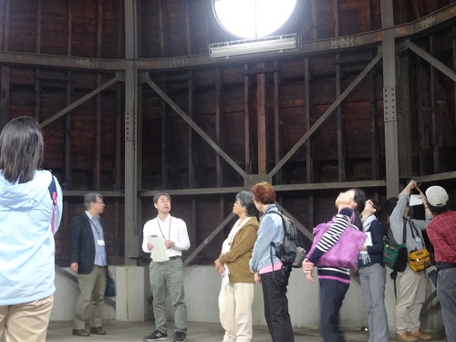 前半の横浜正金銀行本店見学会では、展示室を見学しながら建物の概要についてお話しつつ、普段は見ることのできない当初の建築が残る部分を見学しました。