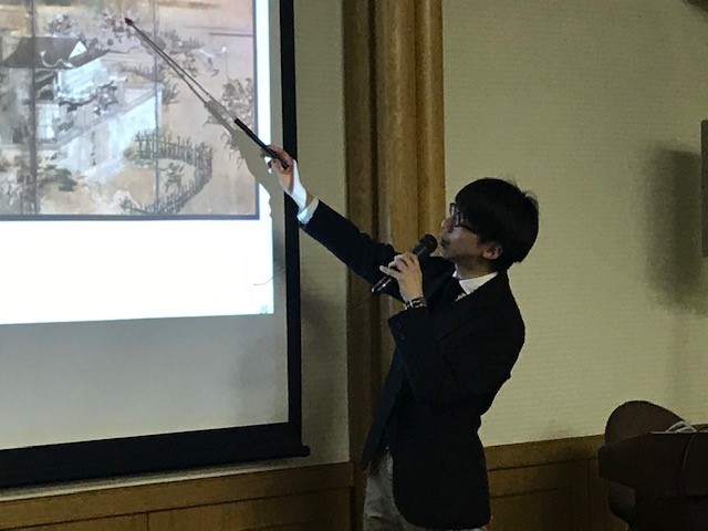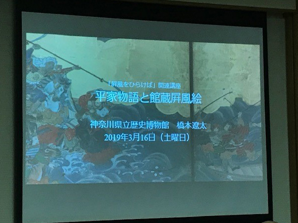 当館所蔵「源平合戦図屏風」を中心に、特別陳列「屏風をひらけば」担当の橋本学芸員による講演会を行いました。
