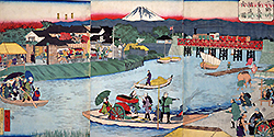 ![]() 三代歌川広重 六郷川蒸気車往返之全図 |